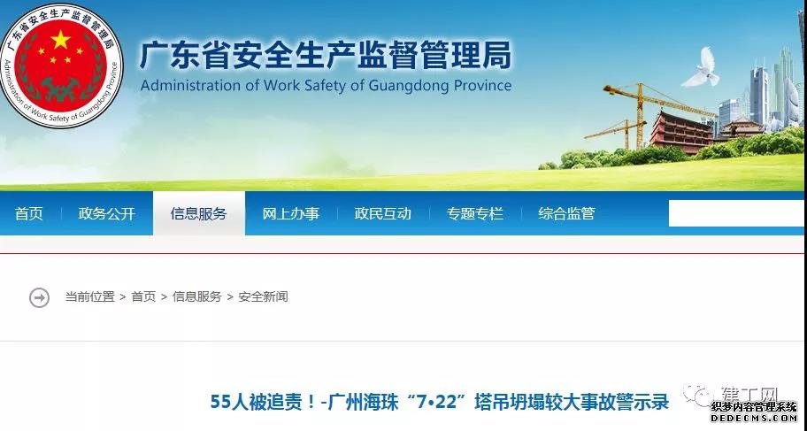 5月15日,廣東省安全生產(chǎn)監(jiān)督管理局官網(wǎng)發(fā)布《廣州海珠“7·22”塔吊坍塌較大事故警示錄》,將該事故調(diào)查結(jié)果及相關(guān)信息向公眾發(fā)布。
